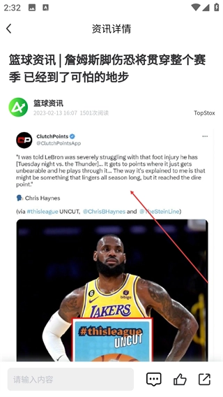 3、在【球员资讯】标签页中,点击具体的资讯条目,就能查看该球员的详细资讯内容,掌握其最新动态。