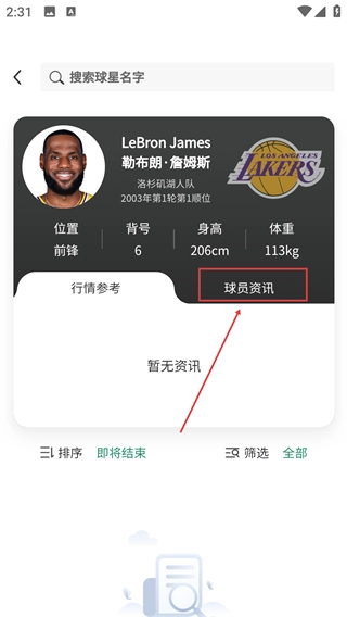 2、在球员详情页,可切换【行情参考】与【球员资讯】标签,查看相应信息,了解球员相关动态。