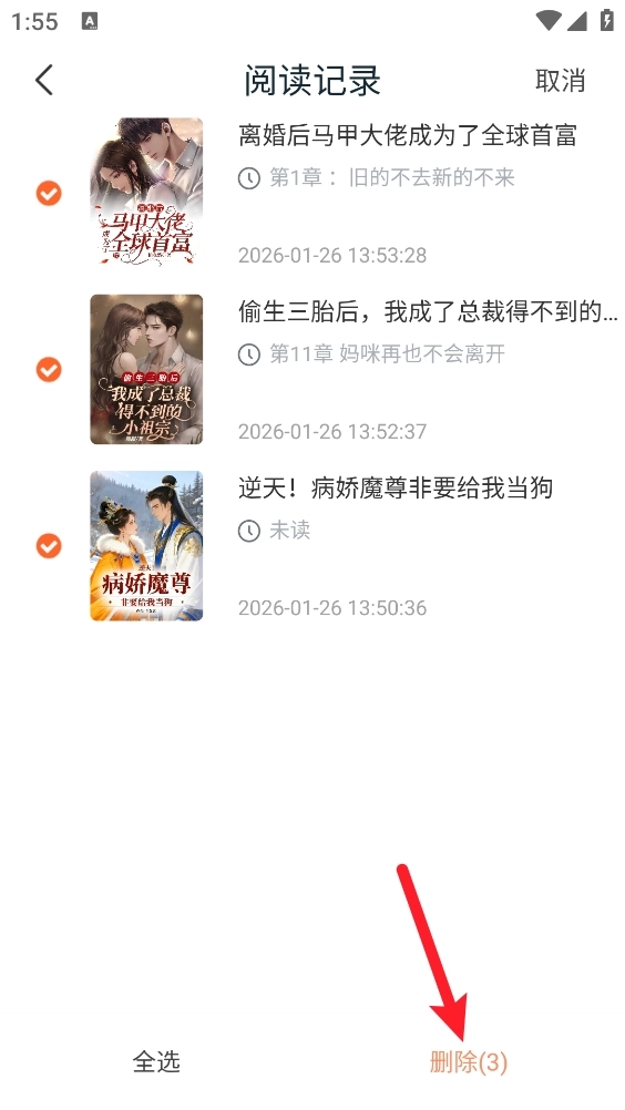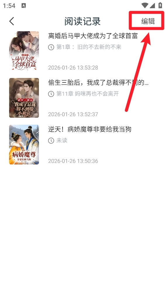 3、进入后即可查看所有阅读记录,然后点击右上角的“编辑”按钮。
