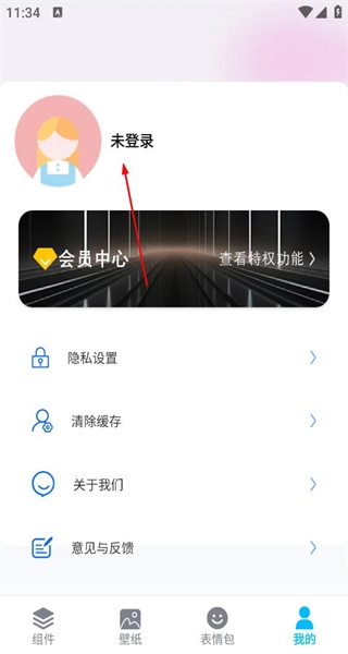 2、进入我的页面后,能看到显示为未登录状态,页面上还有会员中心、隐私设置等功能选项,点击未登录区域即可进入登录界面。