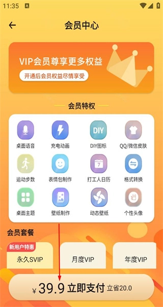 4、登录后进入会员中心页面,能看到VIP会员权益、各类特权以及不同的会员套餐,可选择套餐完成开通操作。