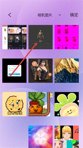 3、在【相机图片】界面里选中需要的目标图片素材,选好后点击右上角的【确定】按钮,这样就能继续完成头像制作的素材导入步骤了。