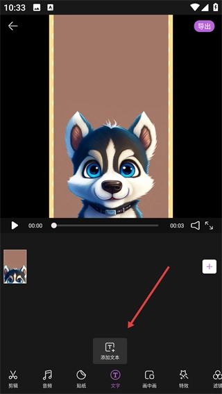 3、进入编辑界面后,点击底部的【添加文本】按钮,就能在素材上插入文字输入框。
