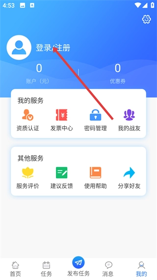 1、在平台首页,点击底部导航栏的【我的】选项,进入个人中心页面,为后续操作做准备。