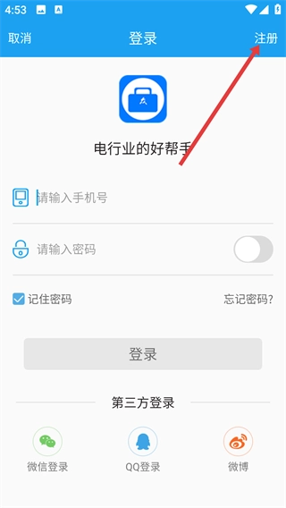 3、进入登录界面后,点击右上角的【注册】按钮,即可跳转至平台的账号注册页面。