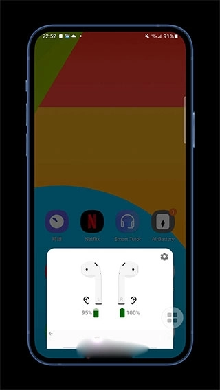 然后Android屏幕底部的小窗口就会显示AirPods电量,还会分别显示左耳和右耳当前的剩余电量情况。