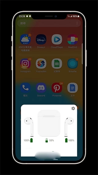 7、小弹窗显示当前Airpods/Beats的电池状态。