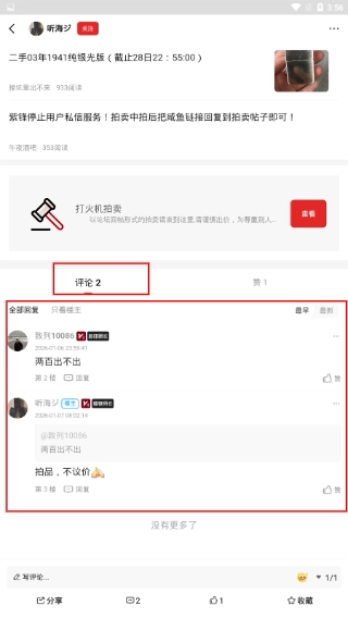 4、在拍品页面,你可以查看【评论】区的内容,以了解其他用户的反馈,同时也能参与出价等相关操作。