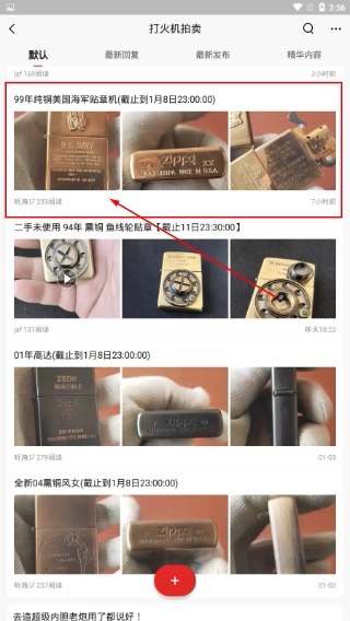 2、进入打火机拍卖页面后,可浏览各类拍卖品列表,选择目标拍品(如1999年纯铜类)进入详情页。