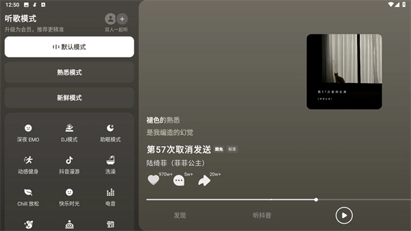 1、不仅可以同步自己抖音收藏的歌曲,还收录了各类热门流行音乐以及小众却经典的曲目。