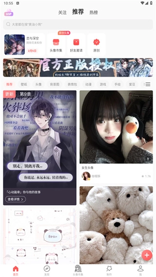 4、之后在发现页面可以查看最热门的各类头像、壁纸、表情包以及模板等内容。