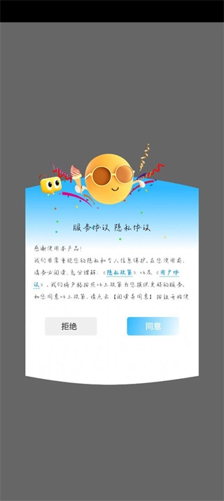 1、仔细阅读服务协议和隐私协议,确认同意相关条款后,点击“同意”按钮就能进入软件。