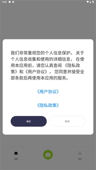 1、仔细阅读用户协议与隐私政策后,点击“确定”按钮就能进入软件;