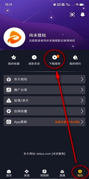 接着就会显示正在加载中,回到主界面后,点击右下角的“我的”选项,然后选择“缓存”功能。