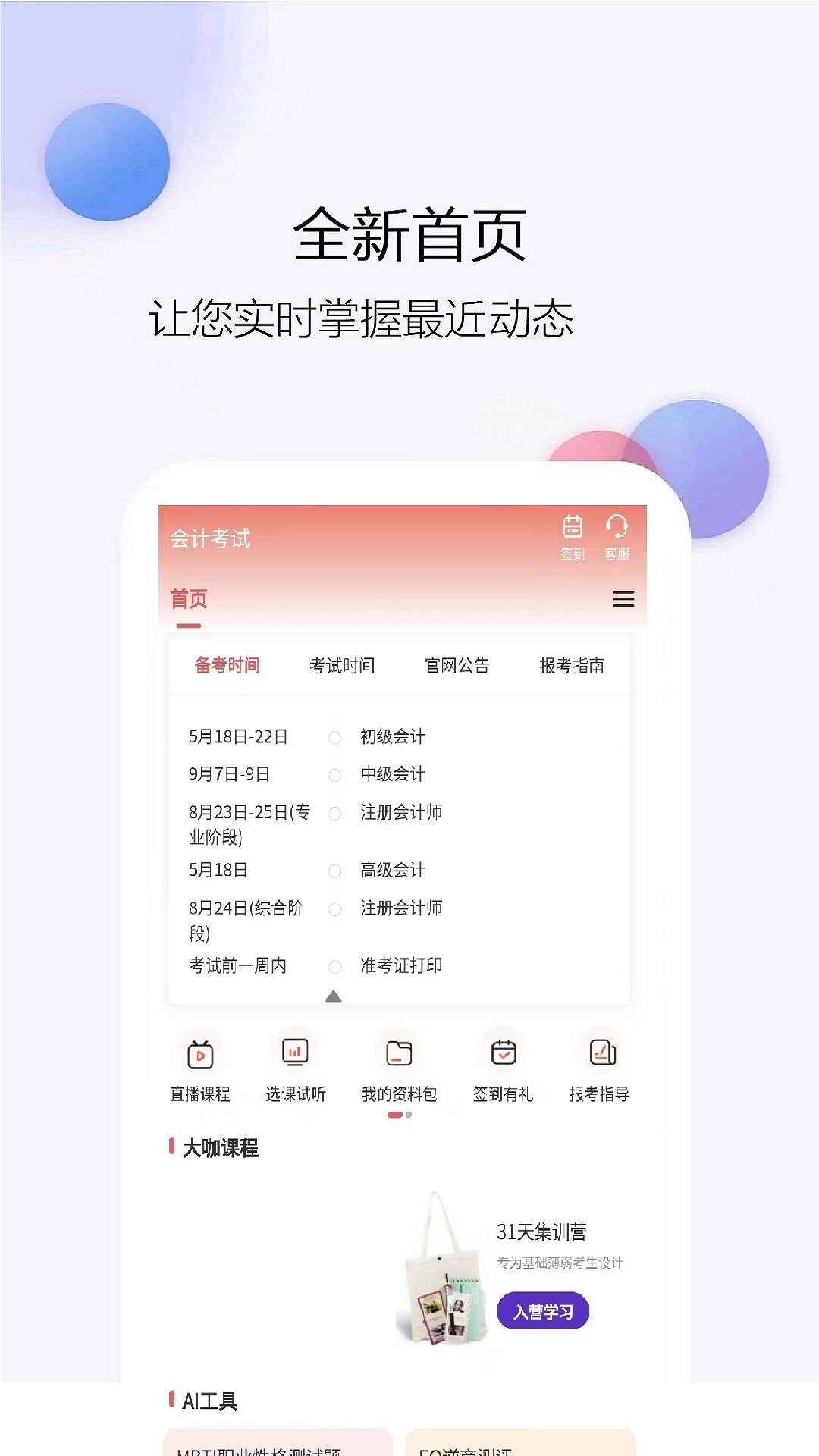 会计考试是各类会计资格证备考的必备学习工具,平台内涵盖丰富的备考题库资源,支持用户随时随地通过手机便捷练题;不仅提供实时更新的最新题库内容,还具备模拟考试、章节专项练习等功能模块;此外,更配备报考指南、名师课程、个人资料包等多元化辅助服务,全方位助力考生安心高效地备考答题。