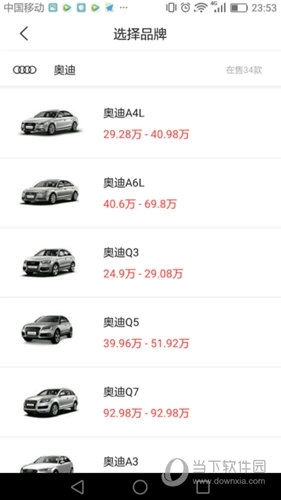 5、在此处,用户能够挑选不同品牌,以查看各品牌对应的车型及价格详情;