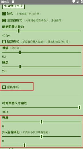 4、还能够设置模糊值、噪点值,选择是否开启虚拟水印,同时也能调整亮度、相对原图尺寸的缩放比例等参数。