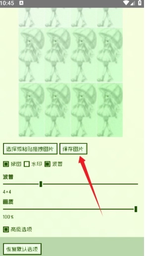 5、等上述各项都设置完毕后,滑动到界面顶部,点击【保存图片】按钮