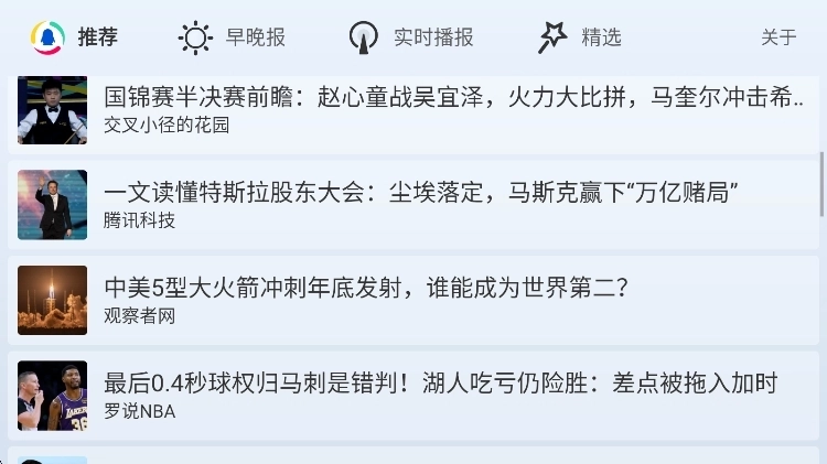 提供腾讯新闻独家打造的名人访谈、人物纪录等精品栏目,像《十三邀》《我的青铜时代》这类,是全年不间断的精神给养。