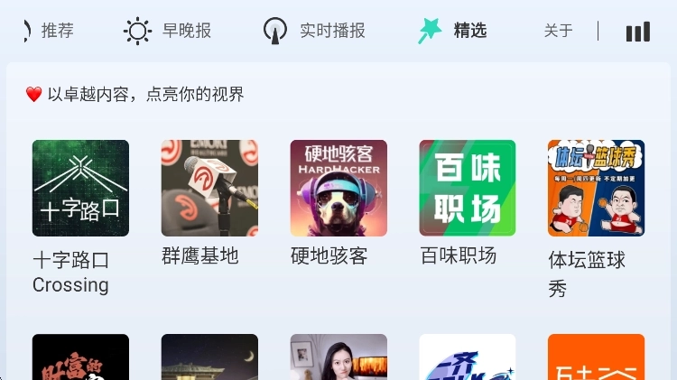 精选节目推荐:您可以收听《十三邀》《我的青铜时代》等平台独家打造的节目,尽情沉浸于富有深度的优质内容之中。