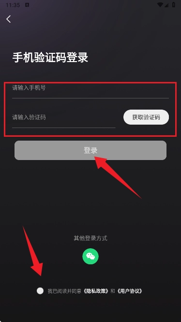 5、当然,这些功能需要用户登录账号才能完整使用,如图所示,我们只需输入账号和验证码,就能完成登录操作。