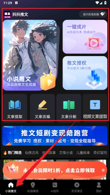 1、提供漫画、小说等内容的一键生成工具,简化创作流程;