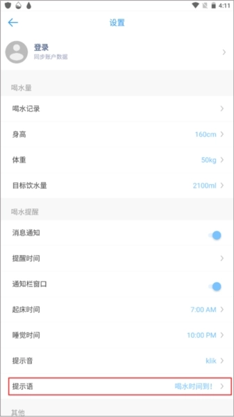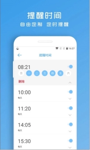 2、定时设置喝水时间,到点自动提醒;
