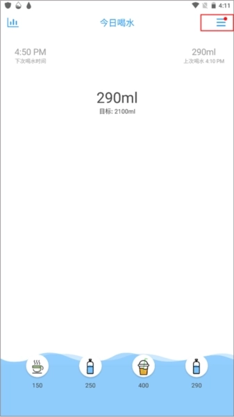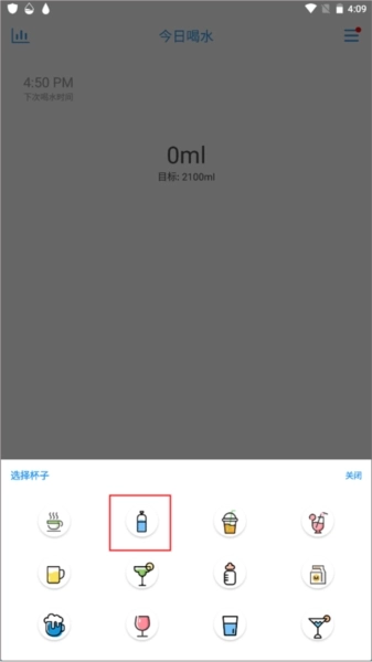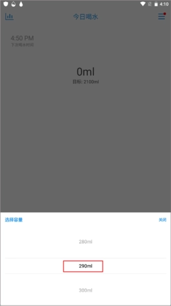 1、首先点击右侧的“…”图标,选择你使用的喝水杯子以及对应的喝水容量,然后关闭下拉菜单。