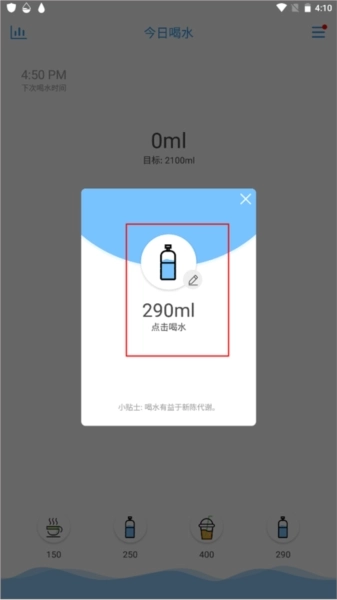 3、自动生成计划目标,不用担心喝水少或多喝水;