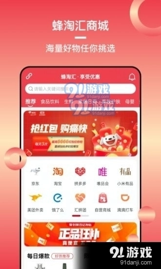 蜂淘汇软件里的商品种类十分丰富,用户能在这里选购到自己所需的各类商品。平台还会不定期推出优惠折扣活动,为大家提供性价比超高的商品,助力用户用更少的支出买到心仪好物。有购物需求的小伙伴们,不妨来蜂淘汇看看吧!