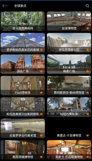 2、在列表里挑选任意一个景点,点击后就能进入全景预览界面。