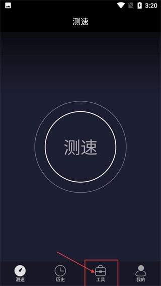 1、在测速应用的主页面,点击底部【工具】选项,可进入工具功能页面,该应用除测速外还提供多种网络相关工具。