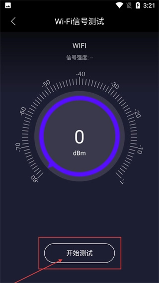 3、选择【Wi-Fi信号测试】功能后,进入对应的测试页面,点击底部【开始测试】按钮,即可启动Wi-Fi信号强度的检测。