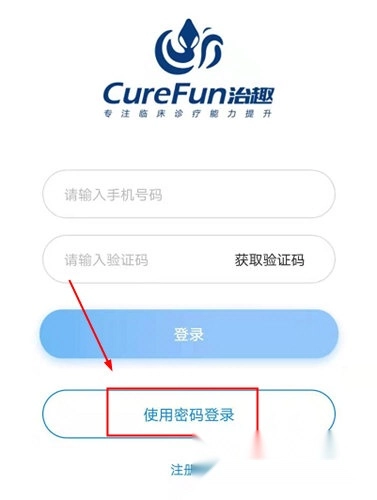 1、打开治趣的登录界面,接着选择并点击密码登录功能。