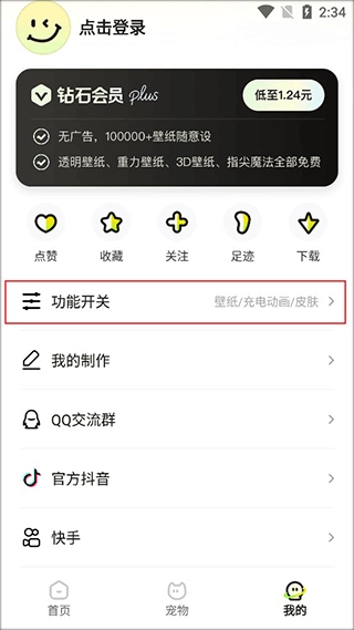 进入个人页面后,找到功能开关并点击进入。