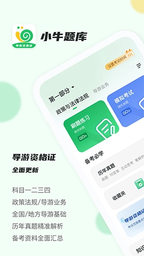 导游证小牛题库是一款专为导游证考试考生打造的优质学习备考软件。它提供丰富的真题题库供在线练习,支持多种练题模式,用户可自由选择适合自己的方式;系统会自动整理错题并生成错题集,方便随时巩固薄弱环节,助力知识强化与能力提升。软件完全免费开放各类真题题库资源,还附赠考点资料及专业图文资料,全方位满足不同用户的备考需求,让备考过程更轻松高效。