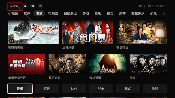 2、进入应用后,点击左上角的搜索功能,用户就能搜索自己想看的影片。