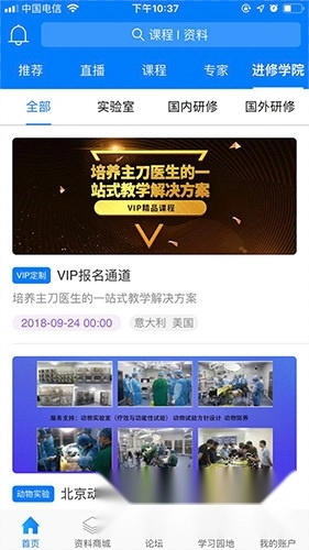 2、标准化课程体系:由学科学术委员会构建的标准化课程体系,可为医生提供视频教学、现场操作、模拟动物实验、国内外研修等一站式的系列教学服务。