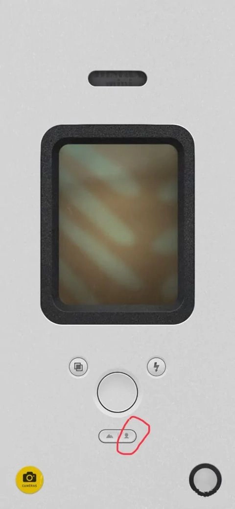 用户可在拍摄页面点击下图红色区域里的小人图标,以此来切换摄像头。