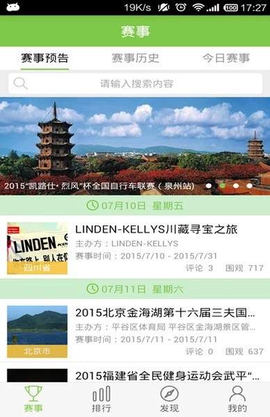 显示未开赛的骑行比赛,用户可以在此频道报名。