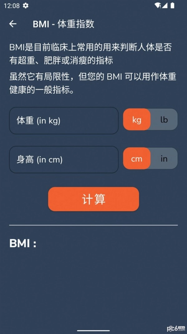 5、具备公制与美制两种单位系统的BMI计算器。