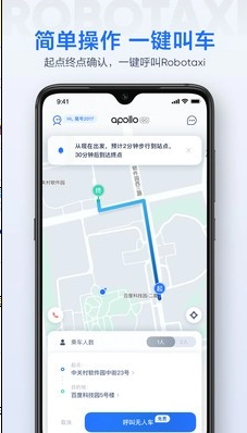 ApolloGO提供一键叫车、人脸识别、步行站点导航等自动驾驶出租车服务,界面简洁、操作简便,让乘客享受到前沿自动驾驶科技带来的优质体验!