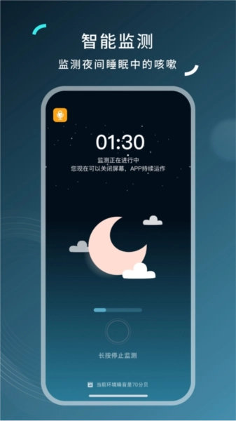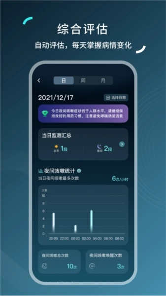 智能监测:该应用能够对夜间睡眠时的咳嗽情况进行监测,从而完成自动化的评估工作。