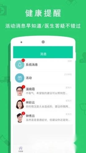 健康档案:健康档案记录可随时随地方便查询;医生通过后台实时监控,能对疾病进行提前预警与提示,有效消除健康隐患。