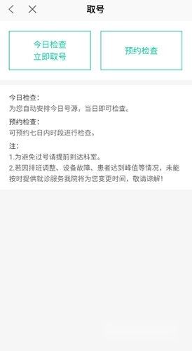3、可选择“今日检查立即取号”或“预约检查”,点击【预约检查】。