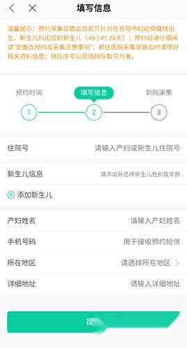 3、挑选预约时段,完善产妇与新生儿的详细信息后,点击提交按钮。