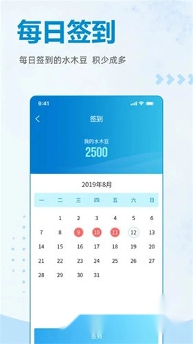 1、每日完成签到即可领取水木豆,并且可以查看每一天对应的水木豆奖励具体数额。
