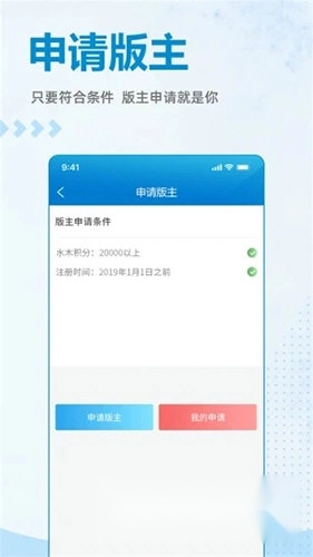 3、申请版主时,可先查看版主的申请条件,之后一键就能快速提交版主申请。