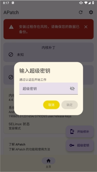 若要进行超级用户管理操作,您得先获取AndroidPatch,之后再把KernelPatch卸载掉。