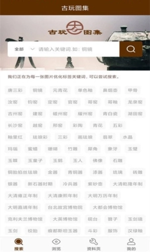 4、可通过古玩类别名称和关键词查找出对应的结果